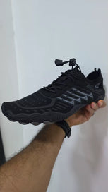 Answer 2: The trainers feature a wide toe box that allows your toes to spread freely, which helps maintain optimal foot comfort and health. Additionally, they adapt to the shape of your foot, relieving pressure and reducing the risk of pain and injuries typically associated with traditional footwear.